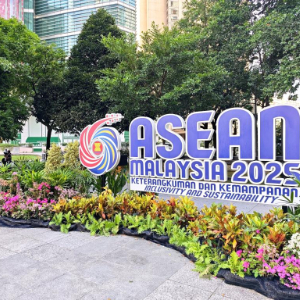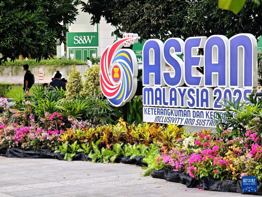 这是10月26日在马来西亚首都吉隆坡街头拍摄的东盟峰会标识。