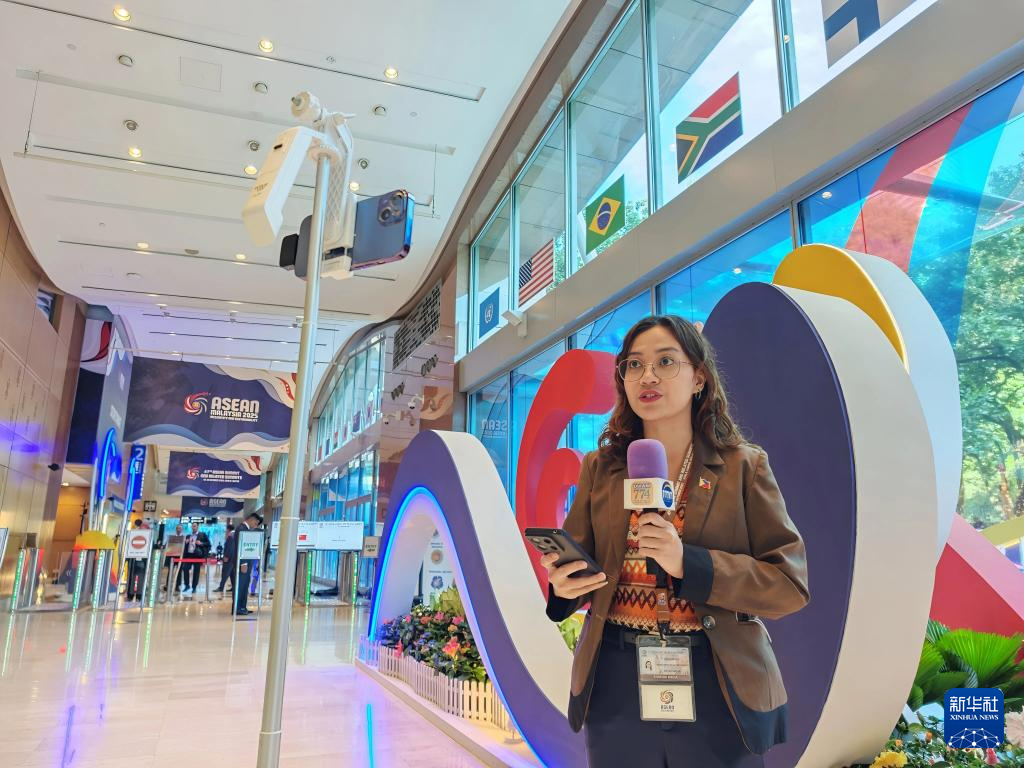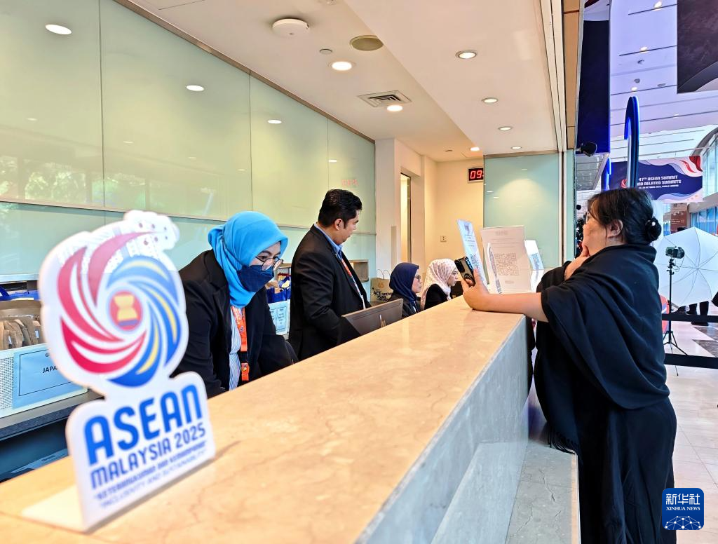10月26日,记者在马来西亚首都吉隆坡的东盟峰会新闻中心咨询问题。