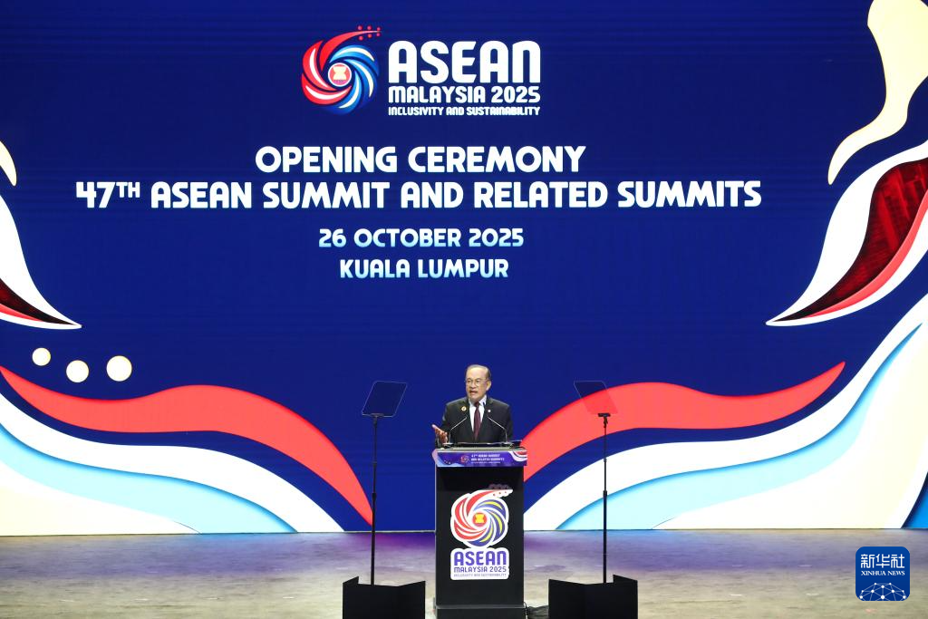 10月26日,在马来西亚首都吉隆坡,东盟轮值主席国马来西亚总理安瓦尔在第47届东盟峰会及系列会议开幕式上致辞。