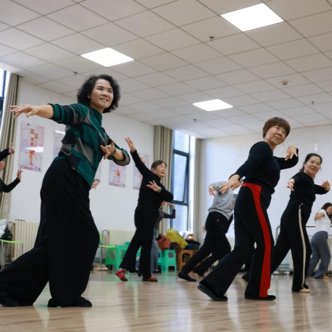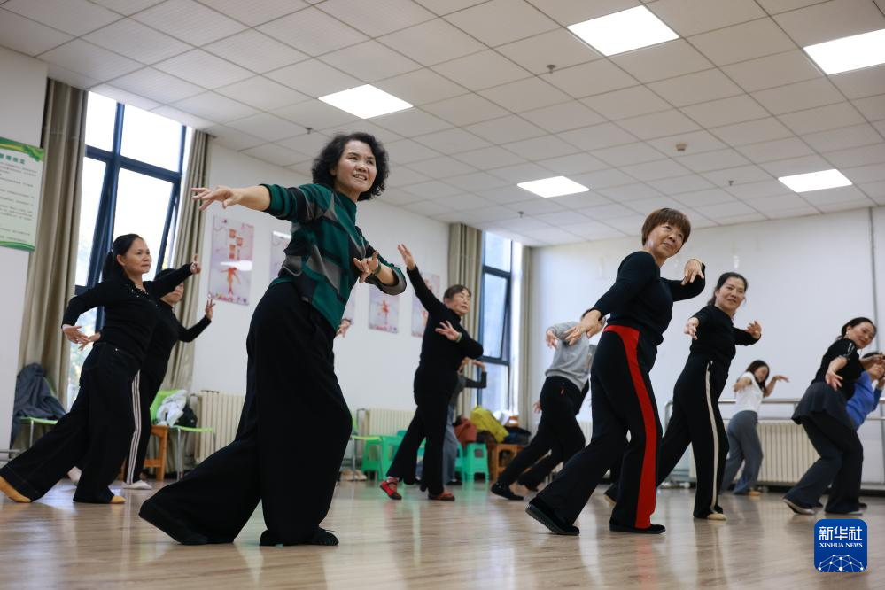 10月28日,在贵州省贵阳市观山湖区世纪城街道观山小区,老年人在老年大学内学习跳舞。