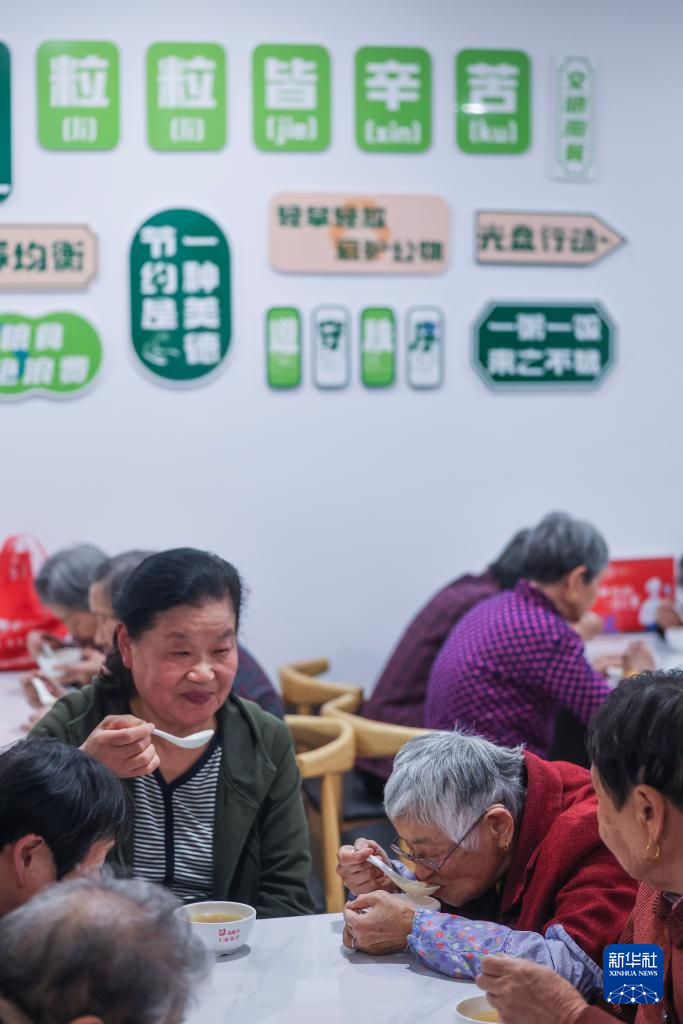10月28日,老人们在嘉兴市南湖区七星街道湘城社区邻里中心幸福食堂用餐。