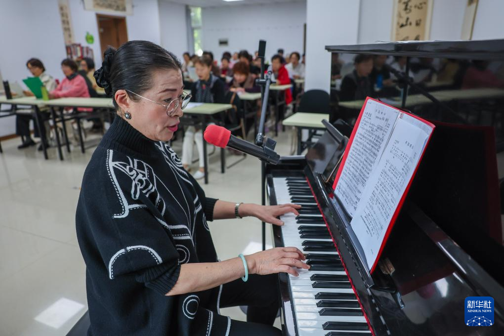 10月28日,在嘉兴市南湖区南湖街道文星社区文化活动室,老师给社区老年合唱班的成员上课。