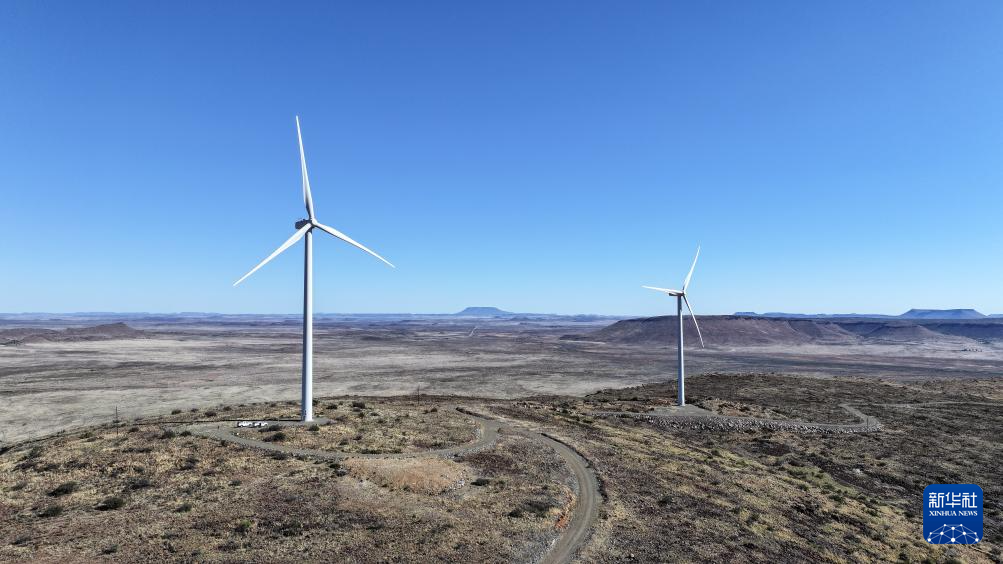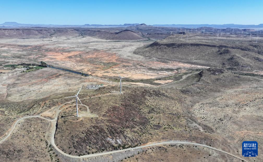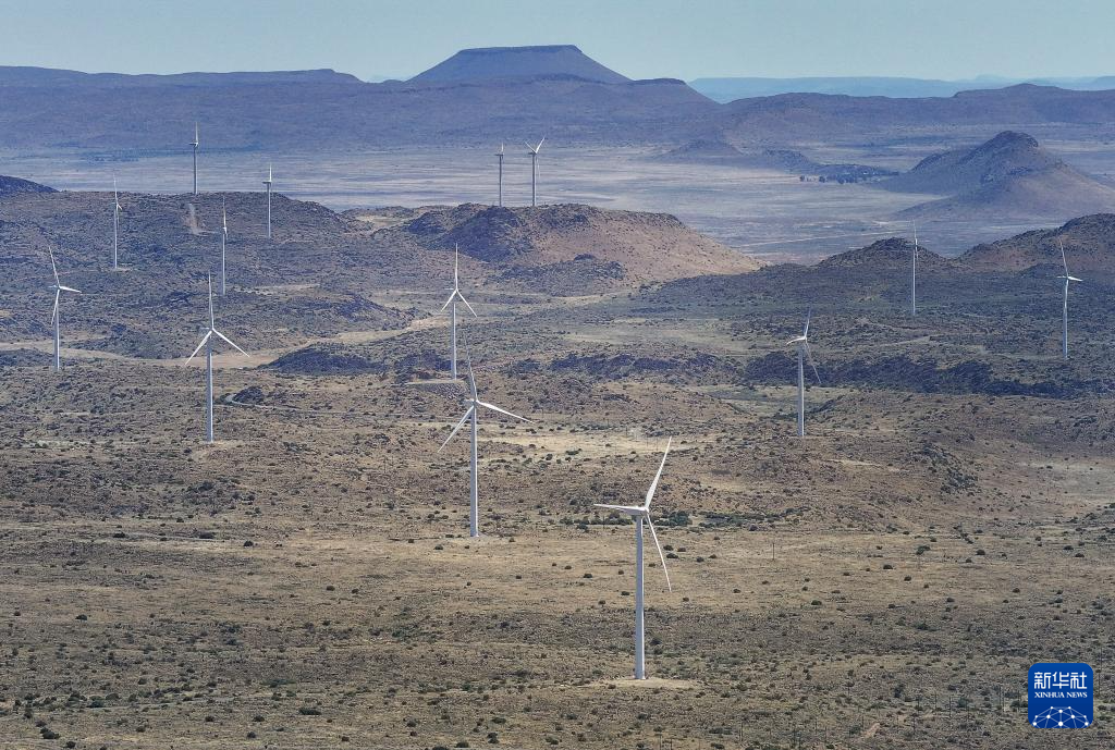 这是10月22日在南非北开普省德阿镇拍摄的德阿风电项目风机和变电站(无人机照片)。