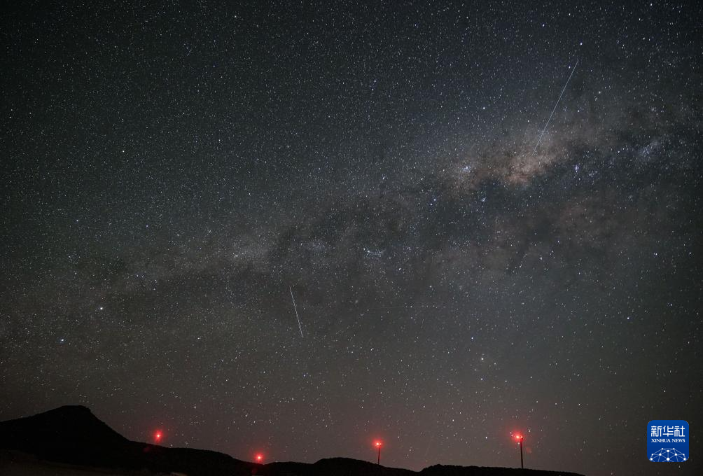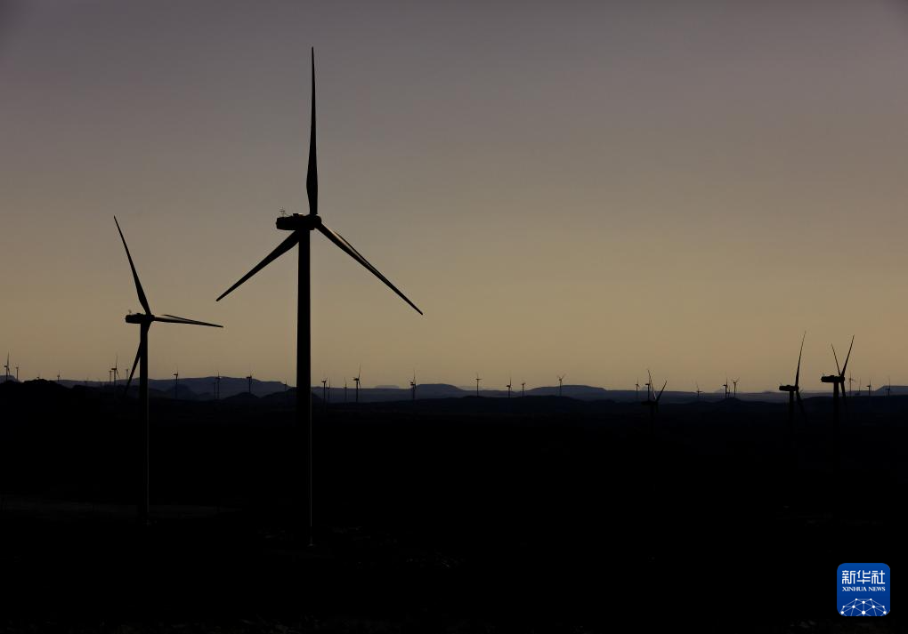 10月22日,在南非北开普省德阿镇,德阿风电项目的风机在星空下运转。