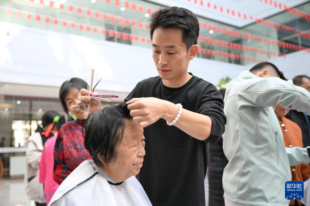 10月29日,理发师在内蒙古鄂尔多斯市神华康城社区为社区居民爱心义剪。
