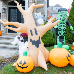 这是10月28日在加拿大安大略省奥克维尔拍摄的一处房屋前的万圣节装饰品。