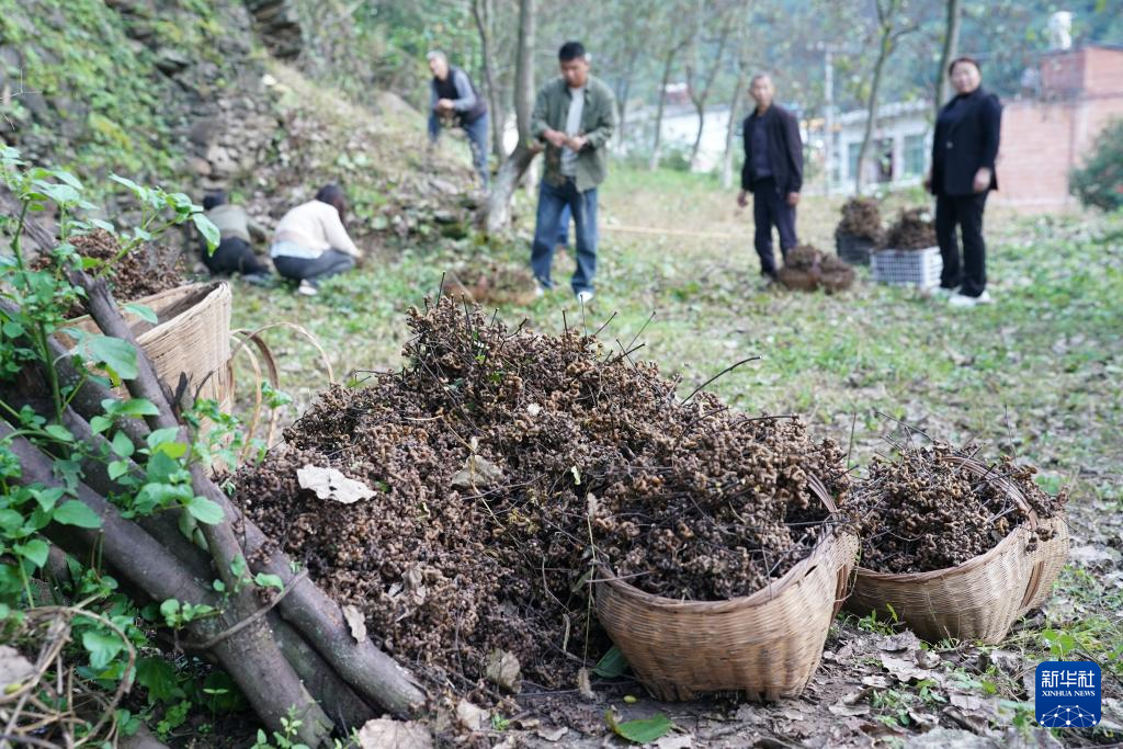 10月28日,果农在旬阳市神河镇王义沟社区拐枣种植基地采收拐枣。