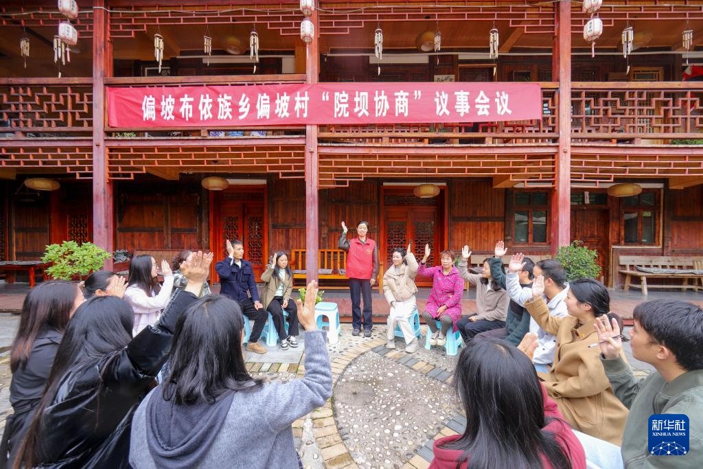 10月27日,村民在贵州省贵阳市乌当区偏坡布依族乡偏坡村农家庭院内议事。