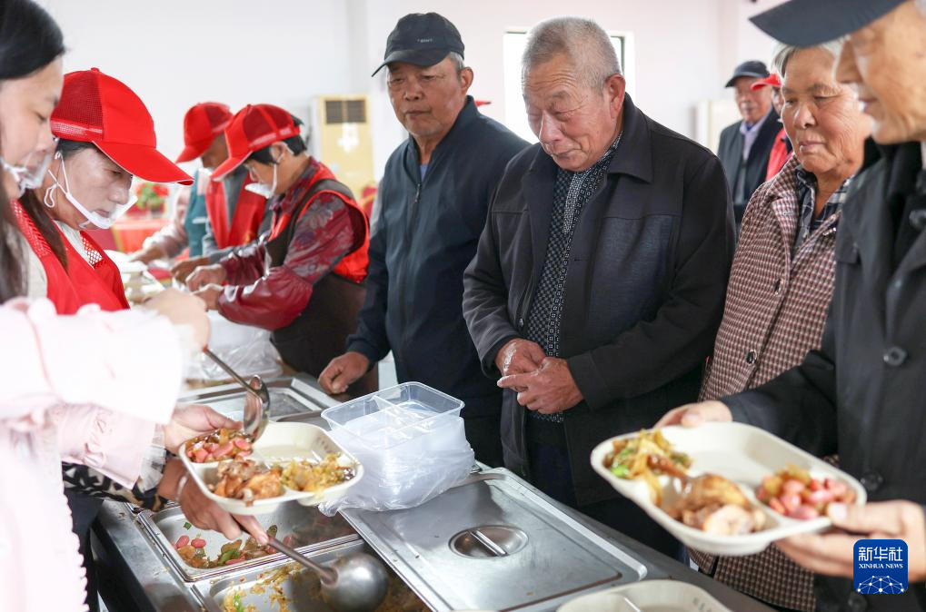 10月26日,江苏省兴化市临城街道赵何村老人在村老年助餐服务点领取午餐。