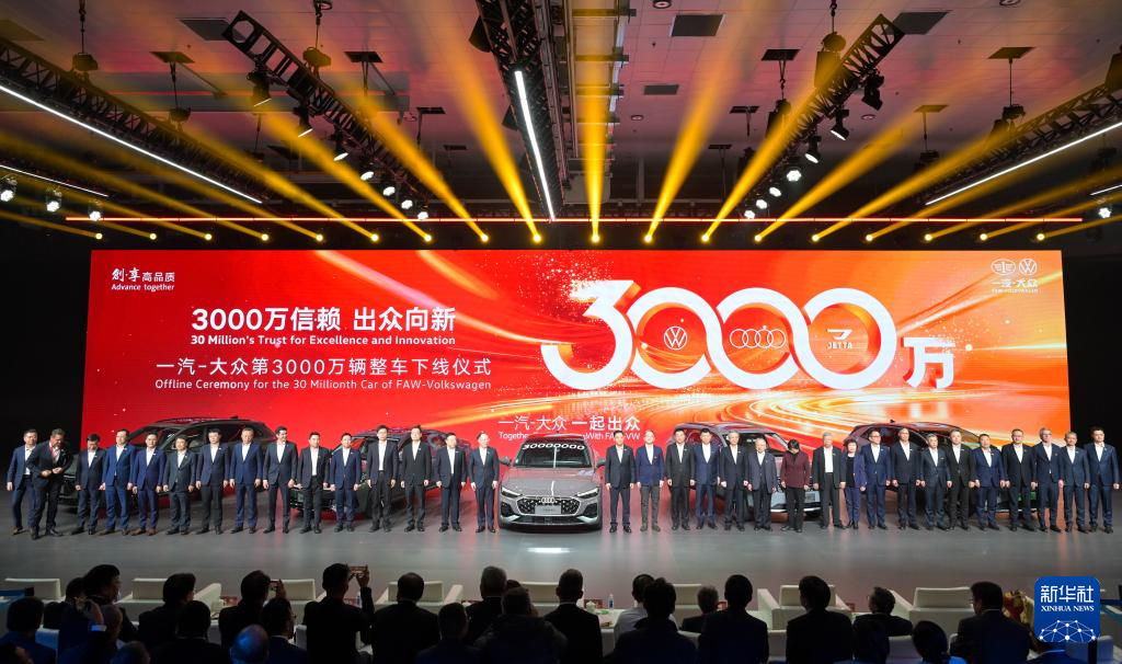 10月30日,一汽-大众汽车有限公司第3000万辆整车下线仪式在吉林长春举行,成为国内首家产销突破3000万辆的乘用车企业。