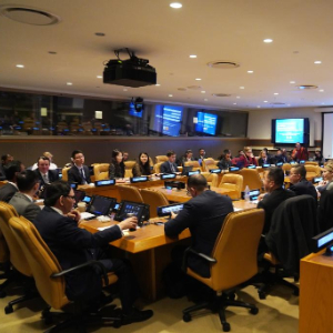 10月29日,在位于纽约的联合国总部,60多个国家和相关国际组织代表参加“国际调解院——完善全球治理法治新平台”主题边会。