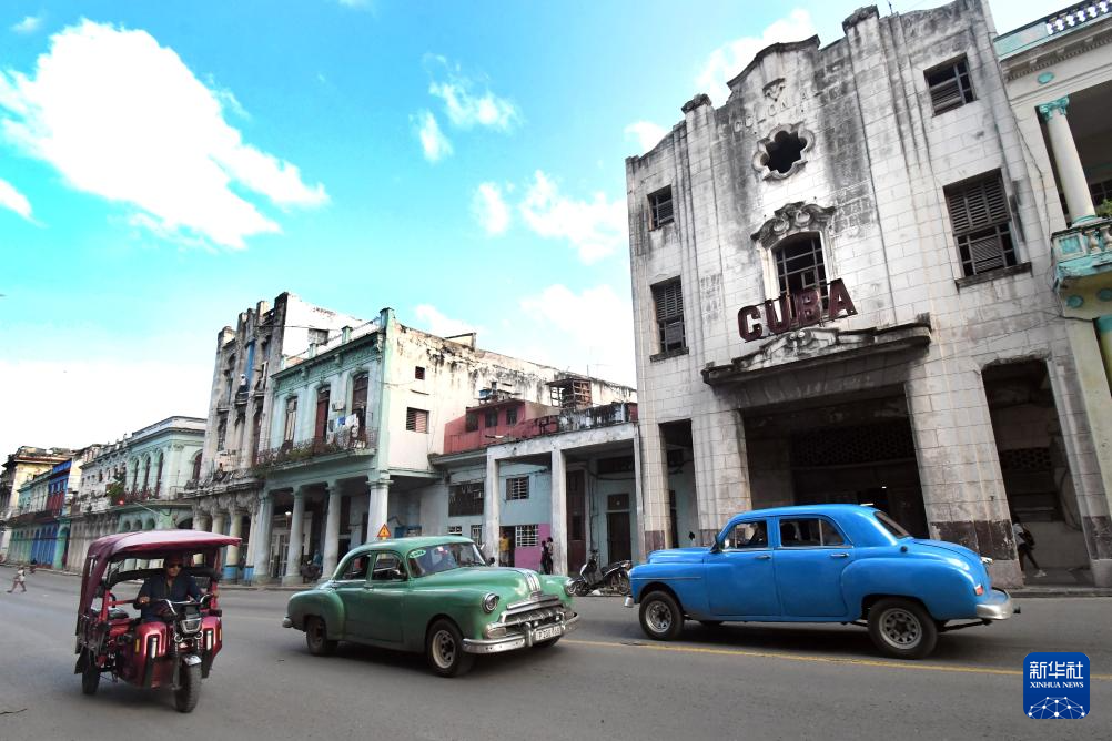 10月29日,老爷车和三轮车在古巴首都哈瓦那街头行驶。