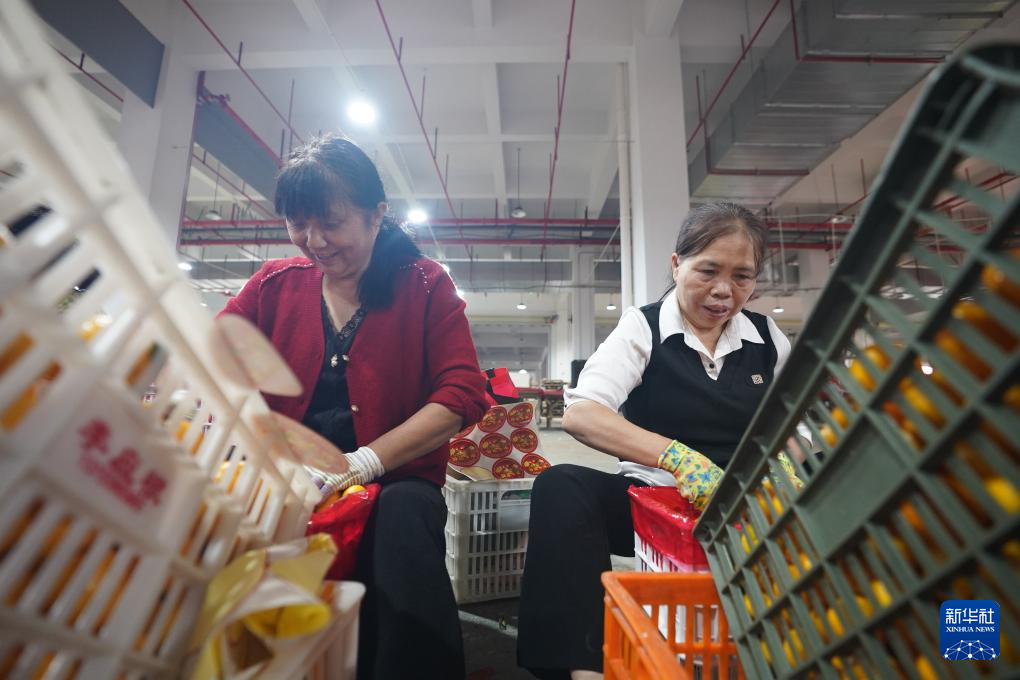 10月30日,在南丰县蜜桔产业科创园,工作人员在打包蜜桔。