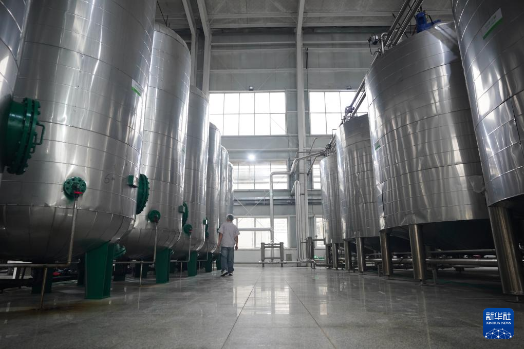 10月30日,在南丰县江西莱檬科技生物有限公司车间,工作人员在查看果胶生产状况。