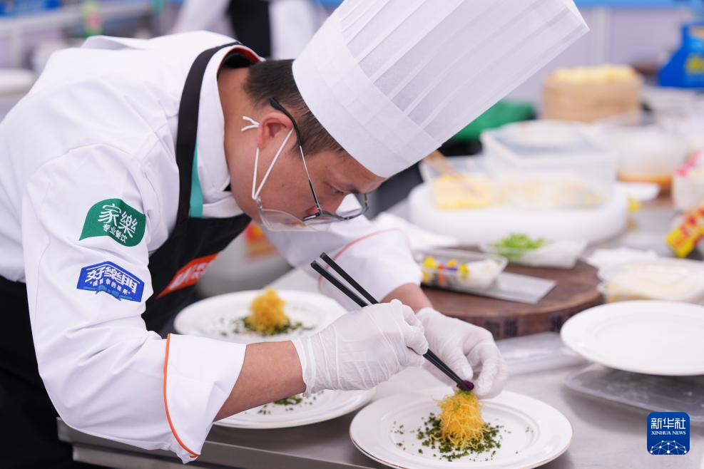 11月1日,参赛选手在2025世界川菜烹饪技能大赛上进行摆盘。