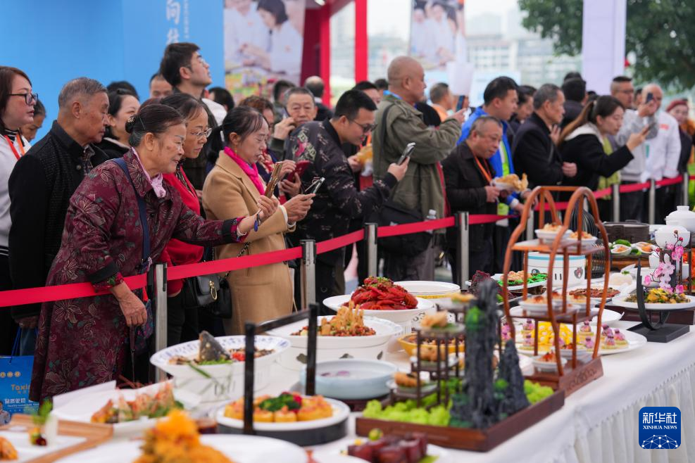 11月1日,市民在2025世界川菜烹饪技能大赛现场观看参赛作品。