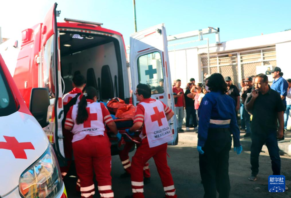 11月1日,在墨西哥北部索诺拉州埃莫西约市,救援人员在火灾现场运送伤员。