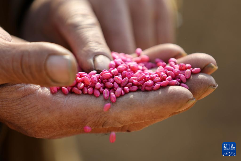 11月3日,河南省平顶山市宝丰县大营镇赵楼村农民在查看冬小麦种子。
