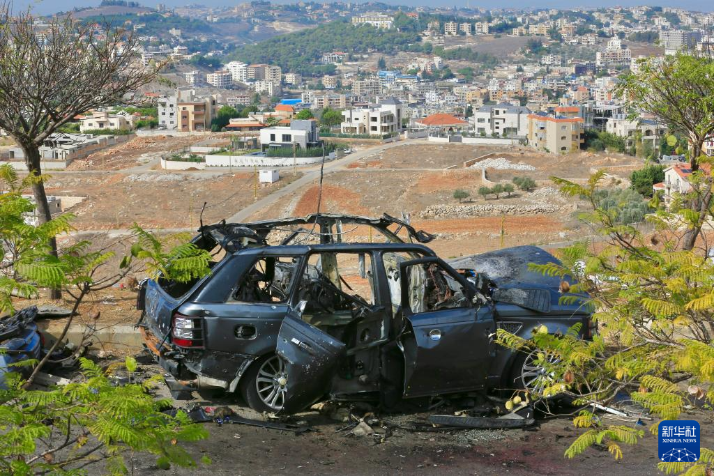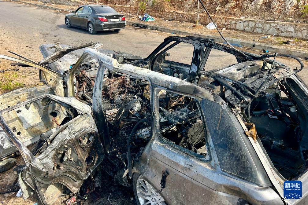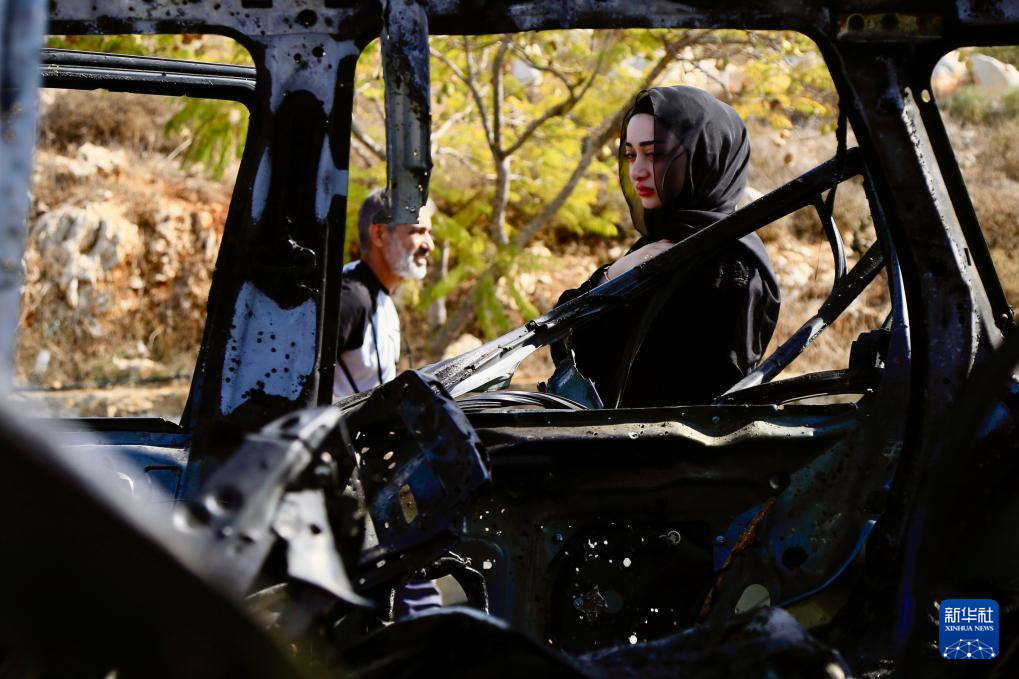 这是11月2日在黎巴嫩南部一村庄拍摄的遭袭汽车残骸。
