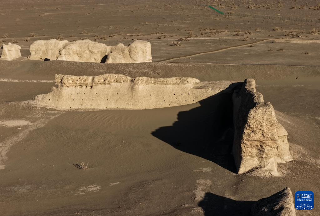 这是11月3日在内蒙古阿拉善盟额济纳旗拍摄的居延遗址中的汉代甲渠候官遗址(无人机照片)。
