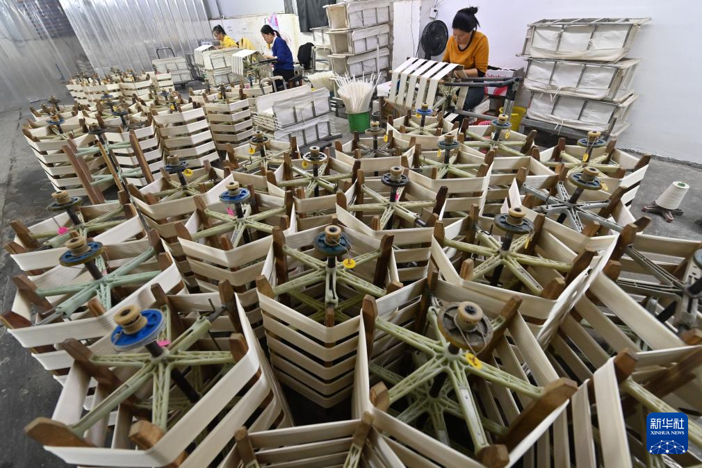 11月4日,工人在广西忻城县一家丝绸企业进行生产作业。