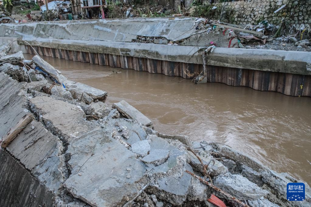 11月5日,在菲律宾宿务省,一处河堤在台风中遭到破坏。