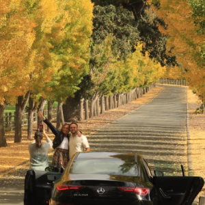 11月4日,在美国加州纳帕谷,一对夫妇在银杏大道拍照。