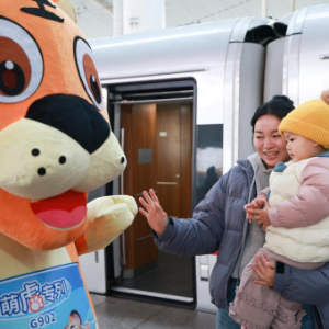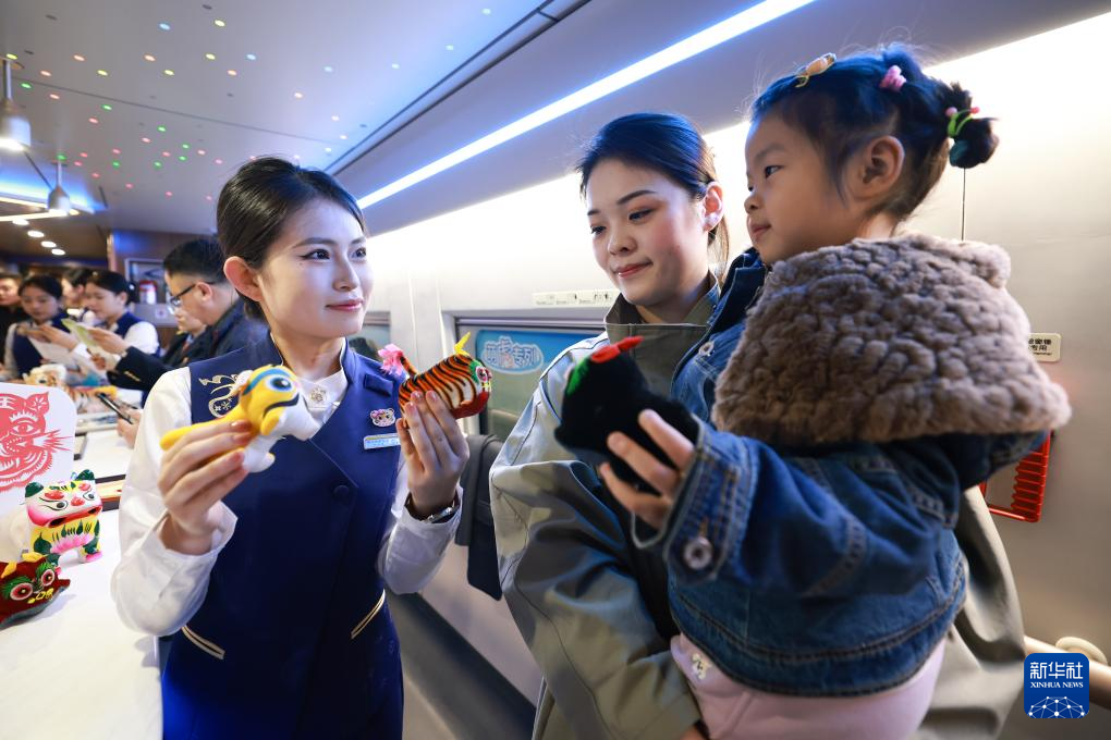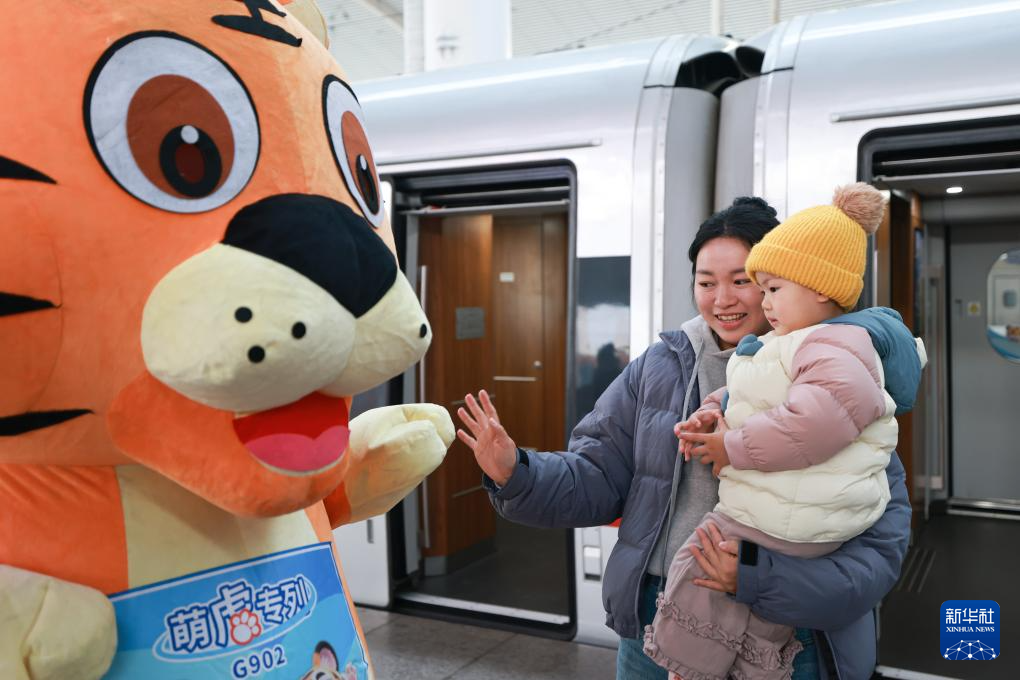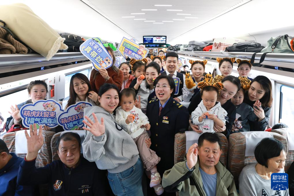 11月5日,中国铁路哈尔滨局集团有限公司哈尔滨客运段担当的G902次首趟“萌虎”主题列车从哈尔滨西站驶出,开往北京。列车以“龙江冰雪蓝”为基调,融合东北虎元素装饰车厢,让旅客在旅途中感受龙江冰雪文化的独特魅力。