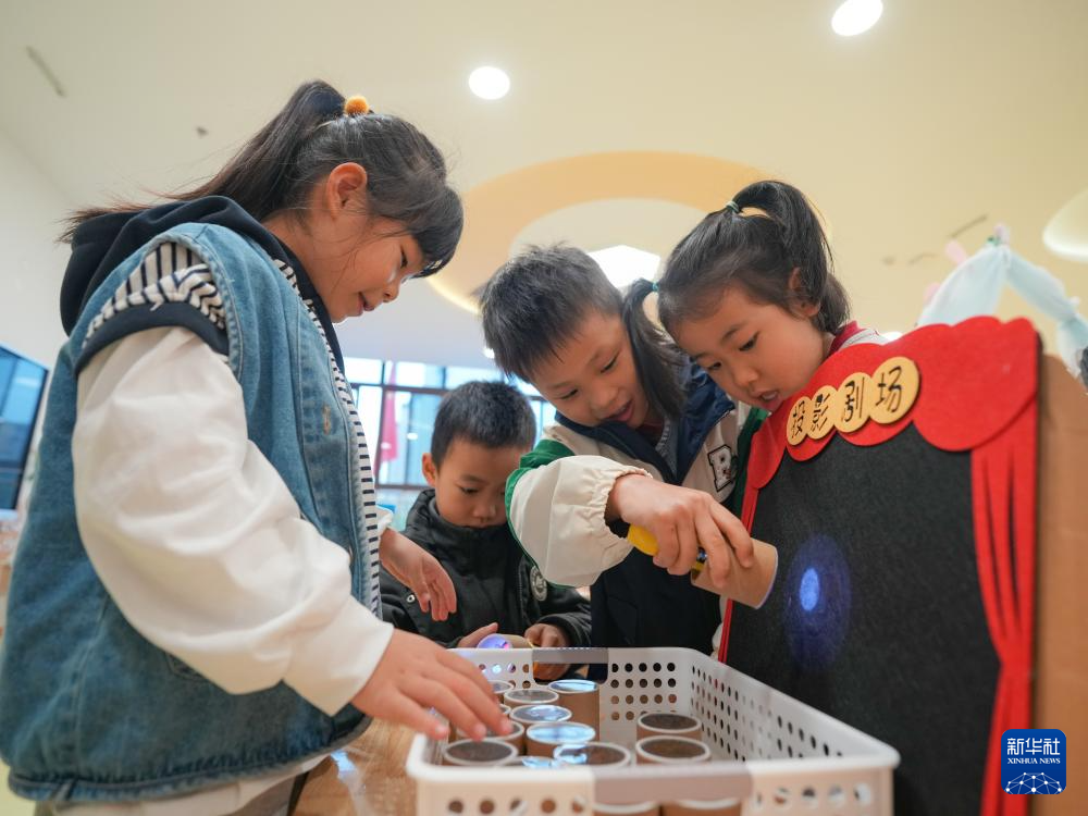 11月4日,小朋友在四川省成都市龙泉驿区灵瑞幼儿园体验投影。