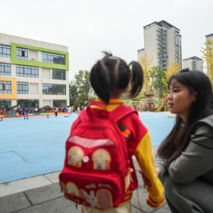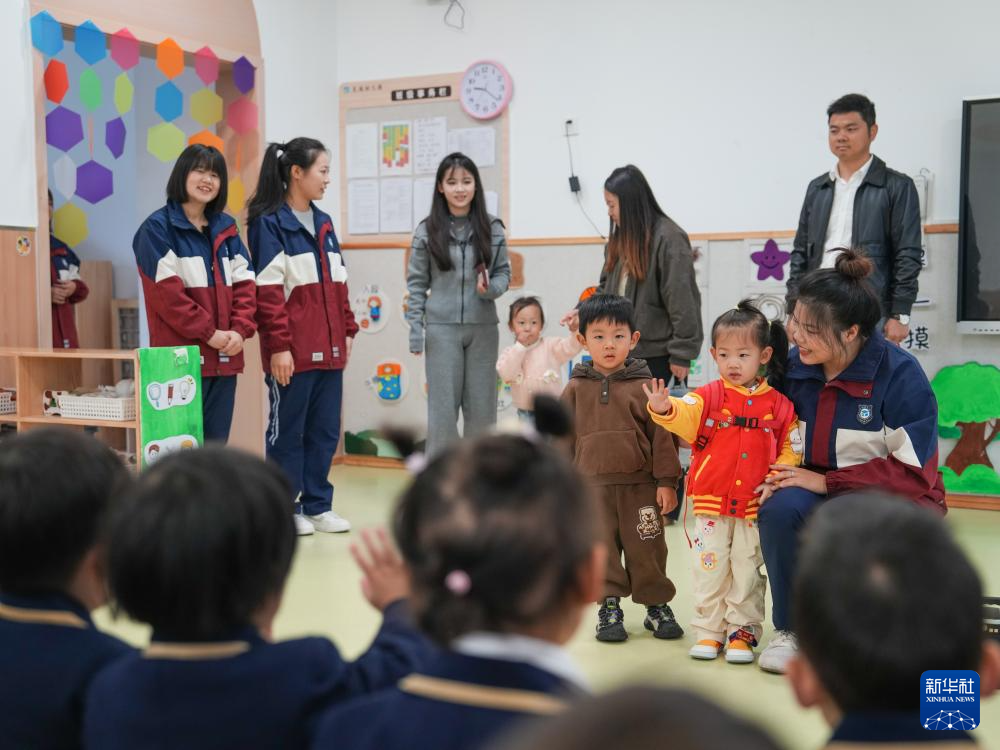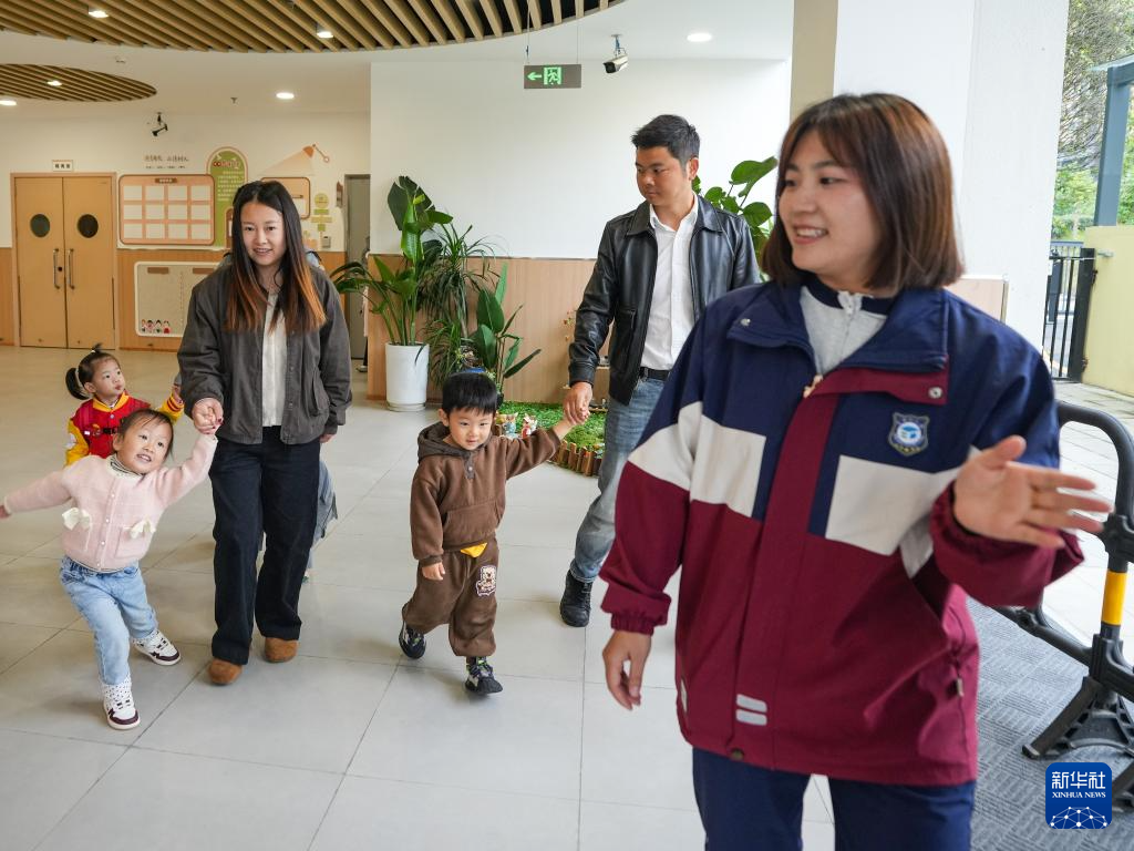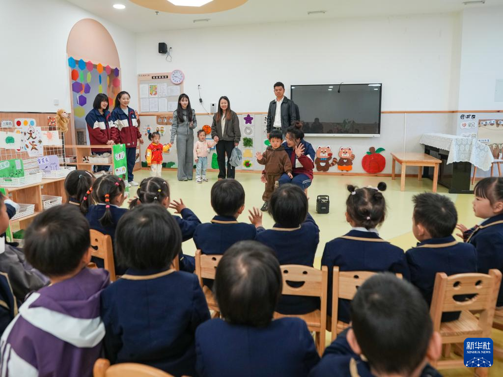 11月4日,在四川省成都市龙泉驿区灵瑞幼儿园,家长带着新入园的小朋友了解幼儿园生活。