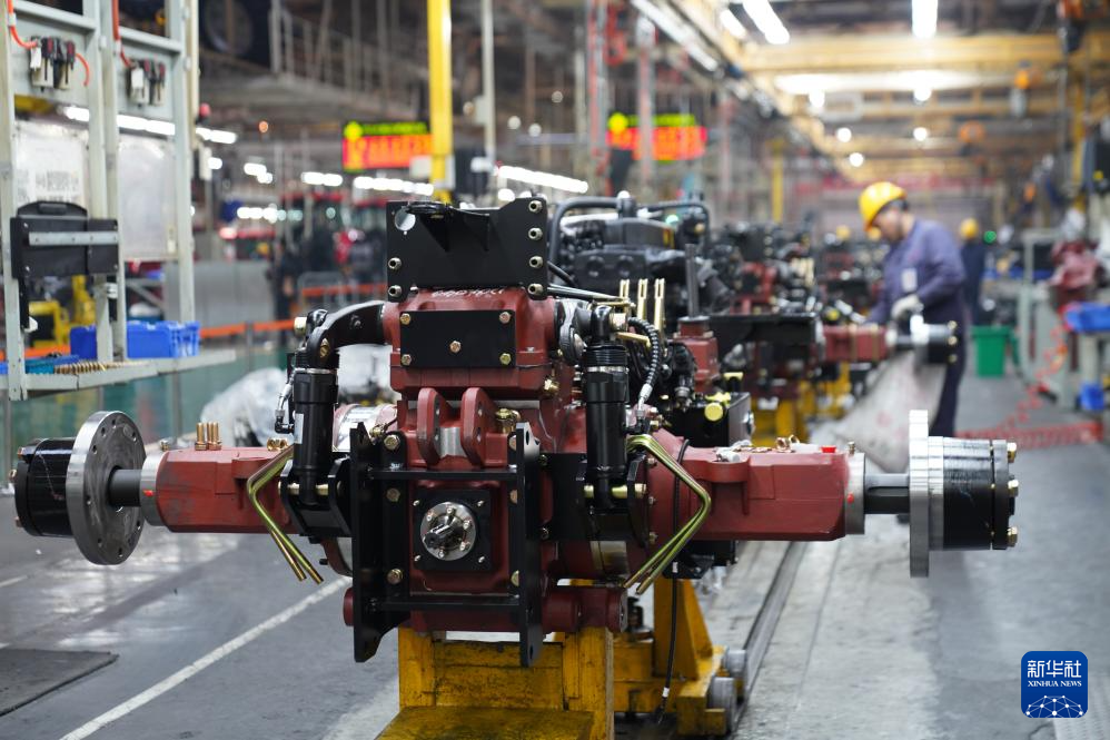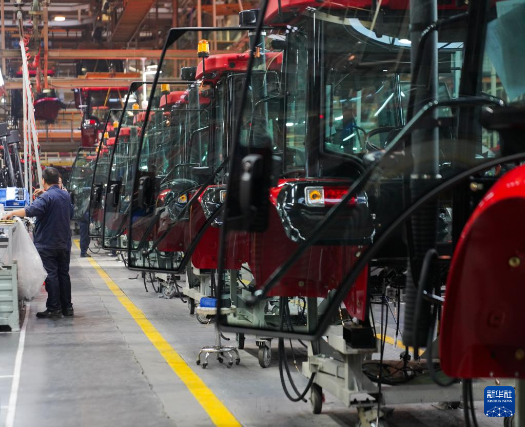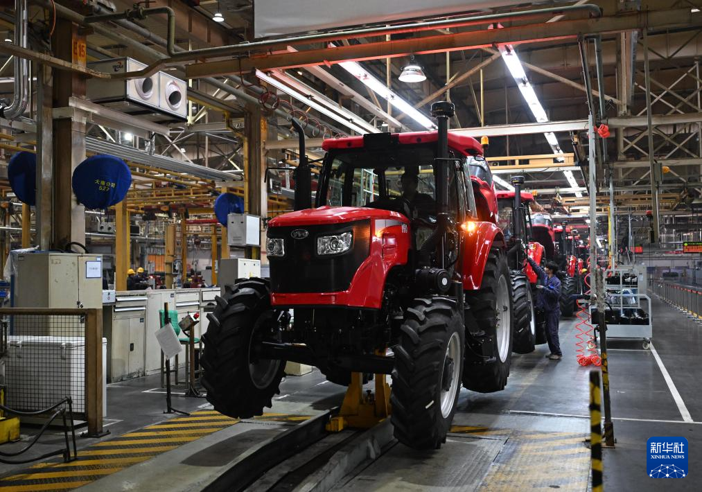 11月4日,工人在位于河南洛阳的国机集团中国一拖大轮拖总装线作业。