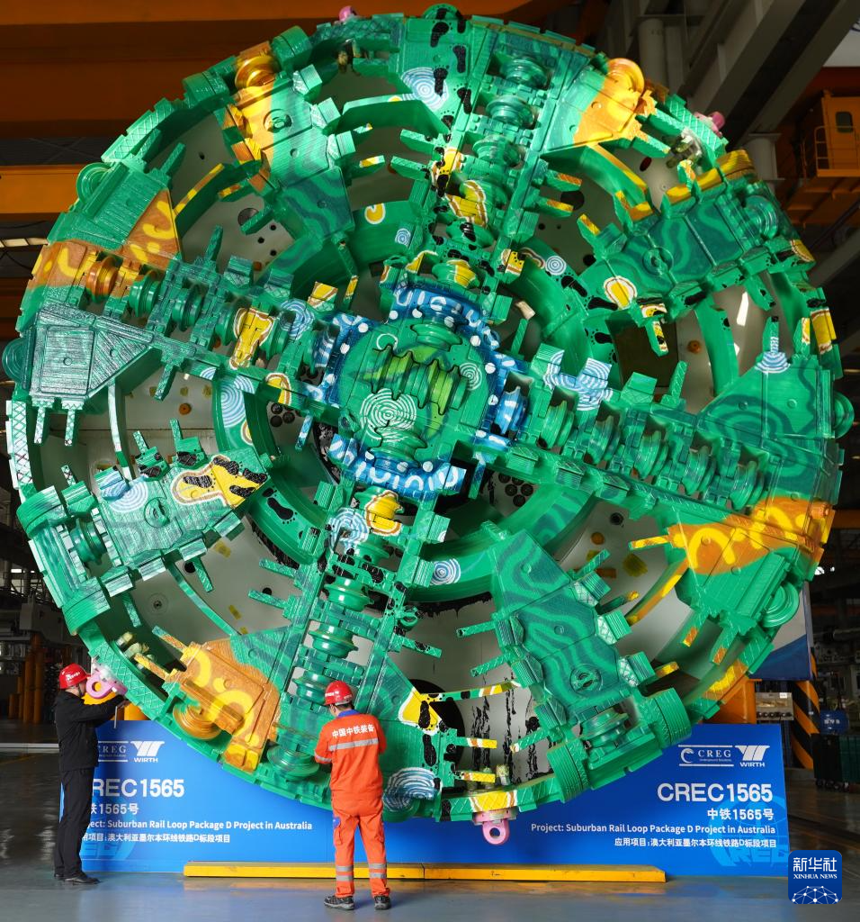 11月3日,工人在位于河南郑州的中铁装备集团车间进行盾构机下线验收工作。