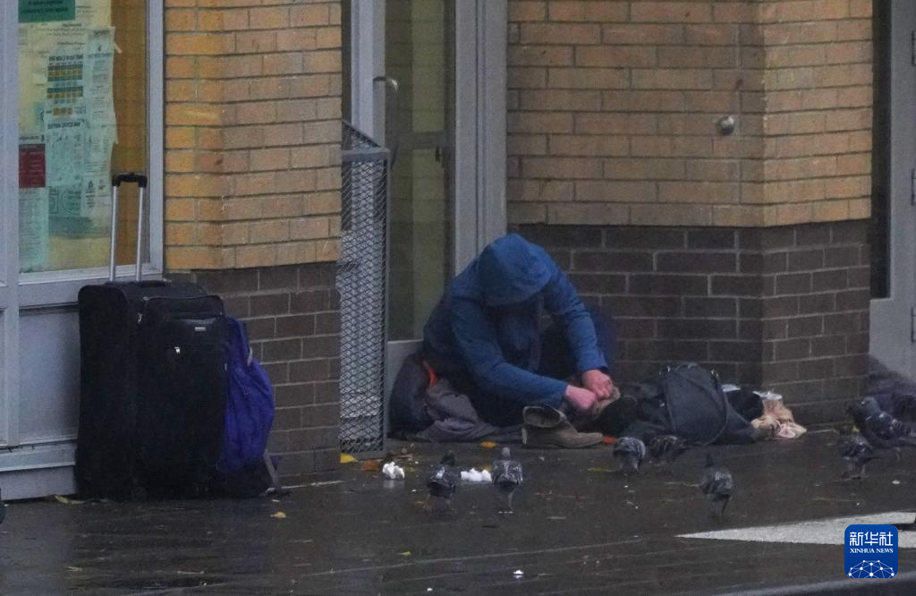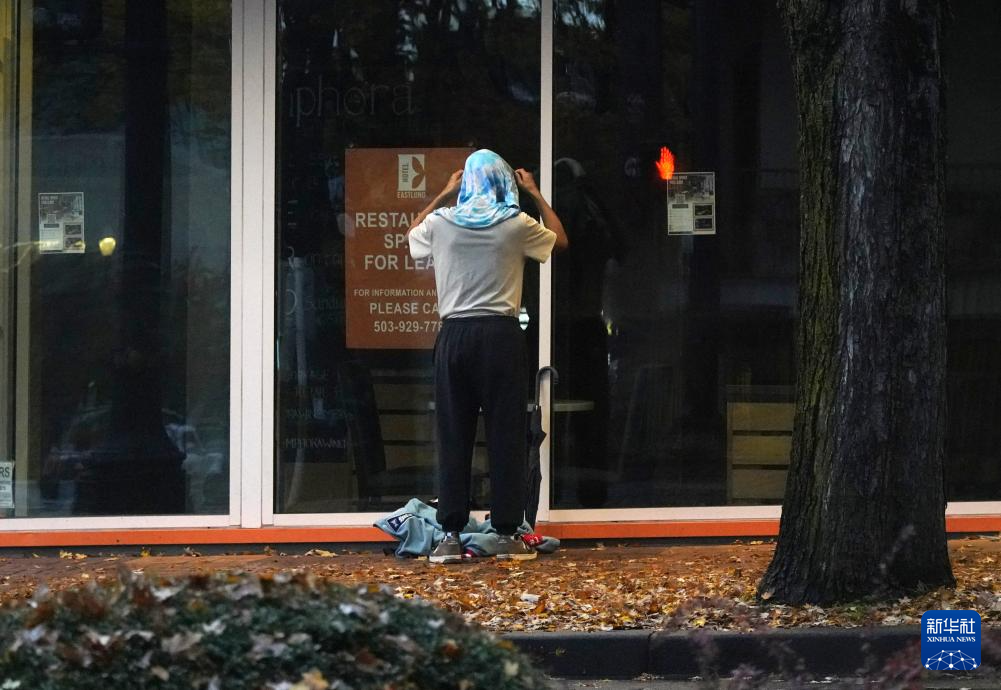 11月5日清晨,在美国俄勒冈州波特兰的深秋寒意中,无家可归者蜷缩在街边角落里。