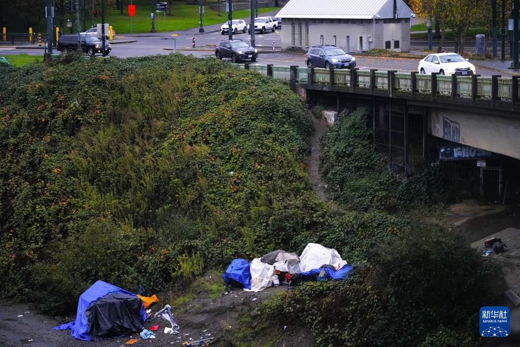 这是11月5日清晨在美国俄勒冈州波特兰拍摄的无家可归者栖身的帐篷。