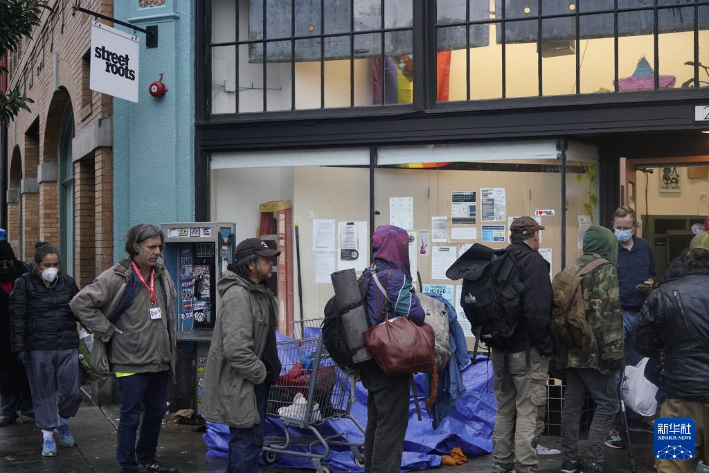 11月5日清晨,在美国俄勒冈州波特兰的深秋寒意中,无家可归者排队等待从民间组织领取救助物品。