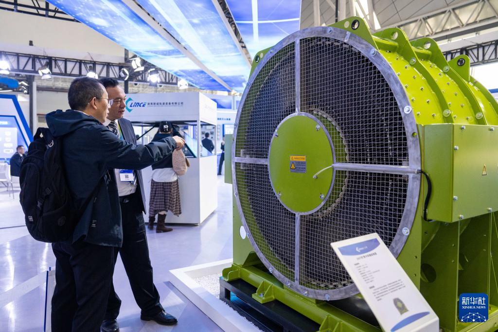 11月7日,观众(左)在株洲国际会展中心了解一款矿用卡车制动电阻。