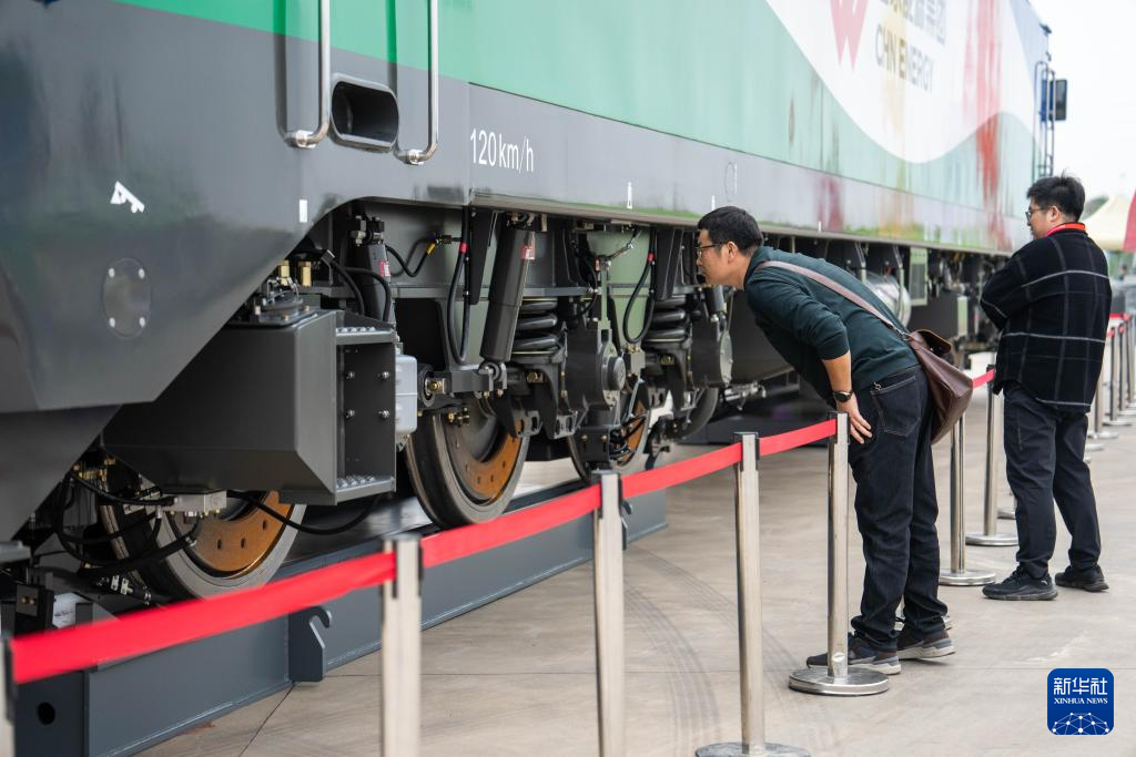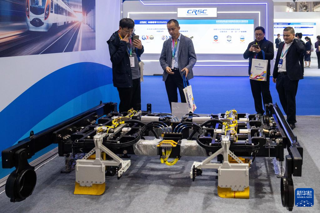 11月7日,观众在株洲国际会展中心了解列车底盘。
