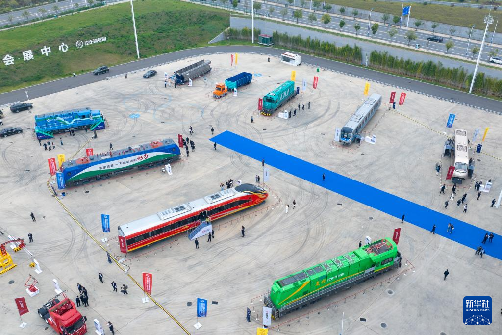 这是11月7日拍摄的2025中国国际轨道交通和装备制造产业博览会户外展区(无人机照片)。