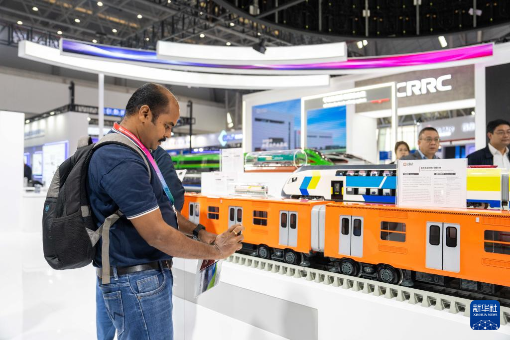 11月7日,观众在株洲国际会展中心了解国产列车产品。
