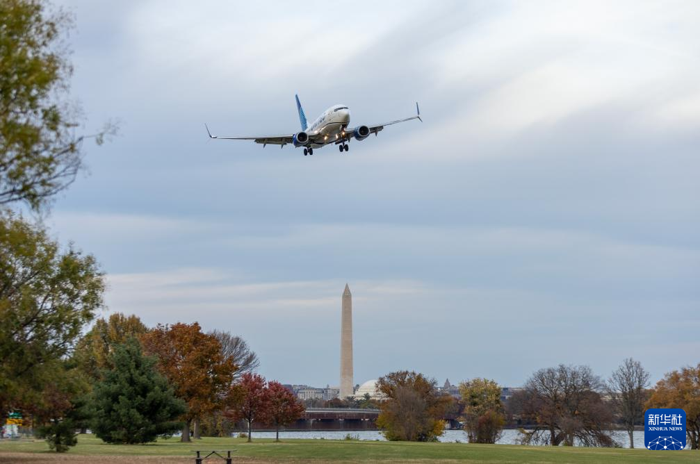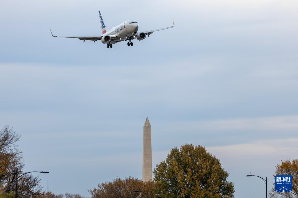 11月7日,一架美国航空公司飞机准备降落在美国弗吉尼亚州阿灵顿的里根国家机场。