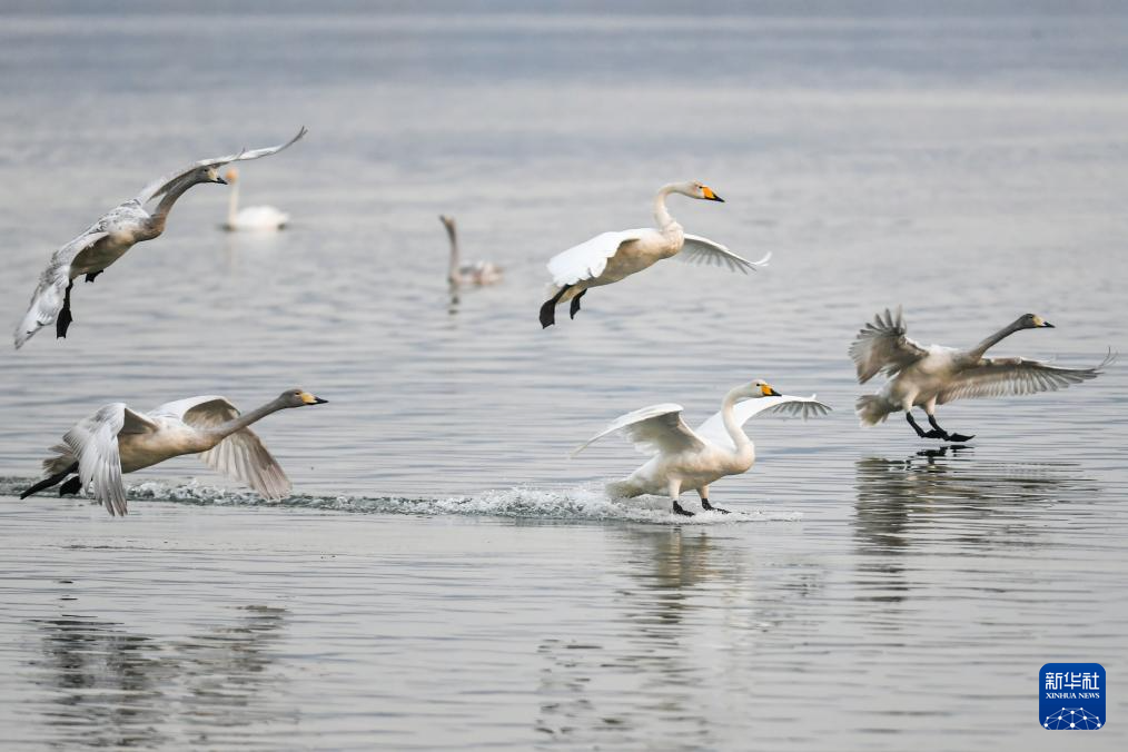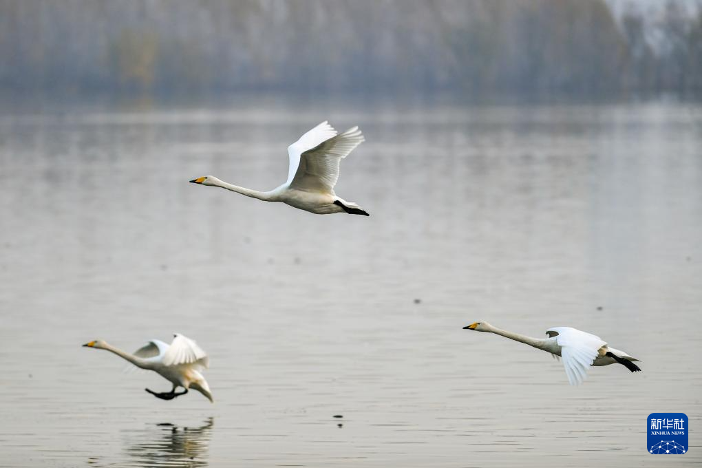 初冬时节,山西平陆黄河湿地迎来了从俄罗斯西伯利亚地区飞来越冬的白天鹅。占地6000多公顷的山西平陆黄河湿地位于山西、河南两省交界处,每年到此越冬的白天鹅数量在1万只左右。