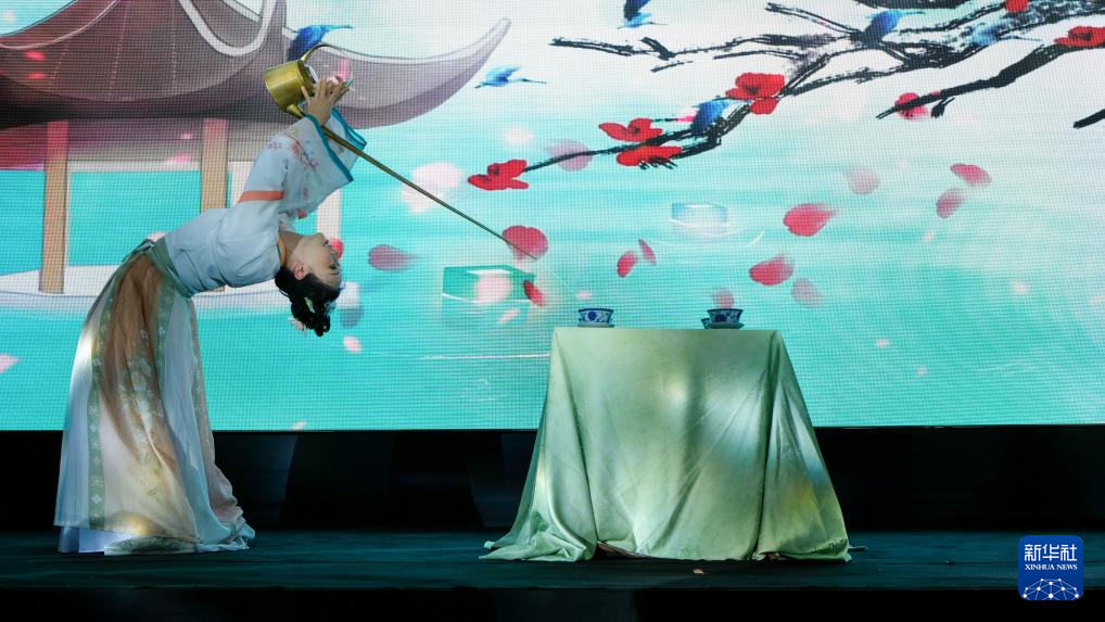11月15日,在摩洛哥卡萨布兰卡,演员进行茶艺表演。