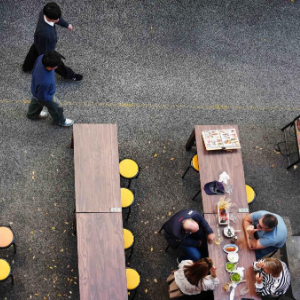 11月17日,一名男子在日本东京的一家咖啡店外休憩。
