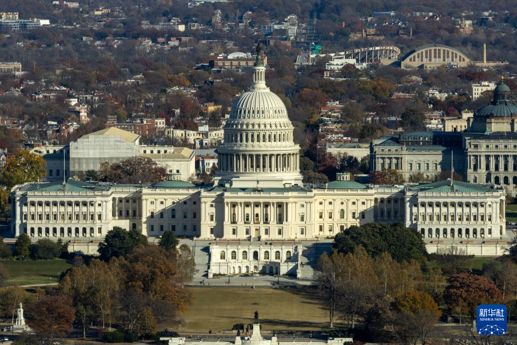 这是11月17日从美国首都华盛顿的华盛顿纪念碑上拍摄的美国国会大厦。