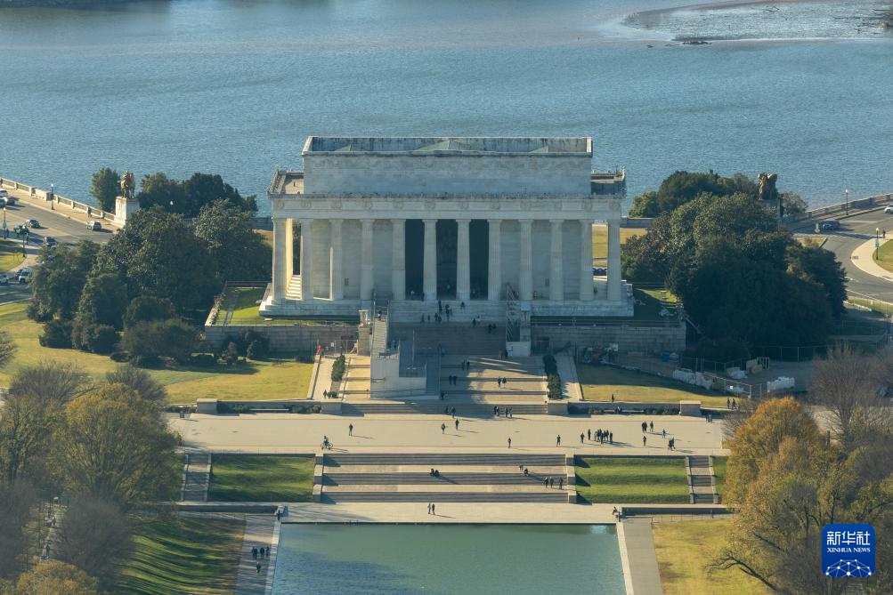 这是11月17日从美国首都华盛顿的华盛顿纪念碑上拍摄的林肯纪念堂。