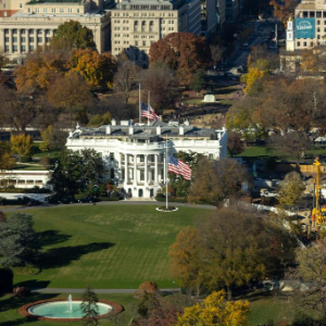 这是11月17日从美国首都华盛顿的华盛顿纪念碑上拍摄的白宫。