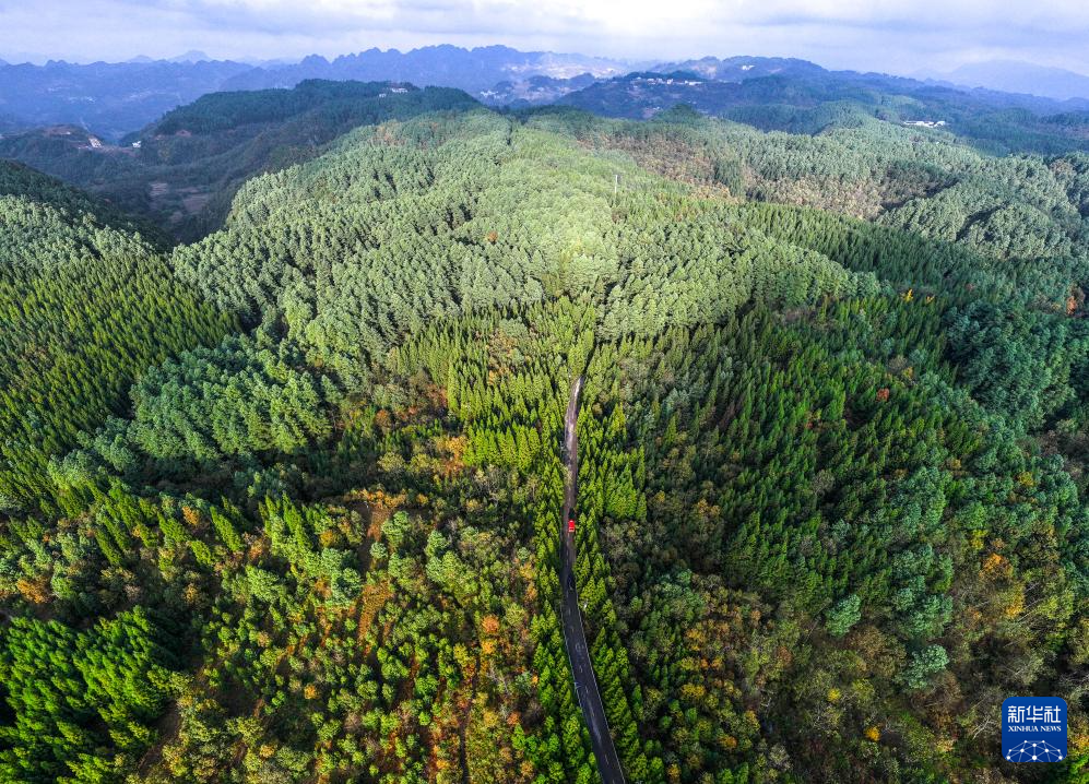 这是11月13日拍摄的贵州省毕节市七星关区拱拢坪国有林场部分林区(无人机全景照片)。