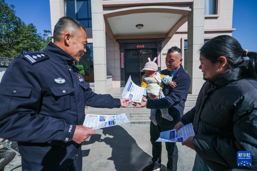 临近岁末,浙江省湖州市吴兴区道场派出所民警深入到辖区的民宿餐厅、咖啡店、博物馆及村民家中,对游客和村民进行形式多样的反诈宣传,进一步增强群众的反诈意识,守护好百姓的“钱袋子”。