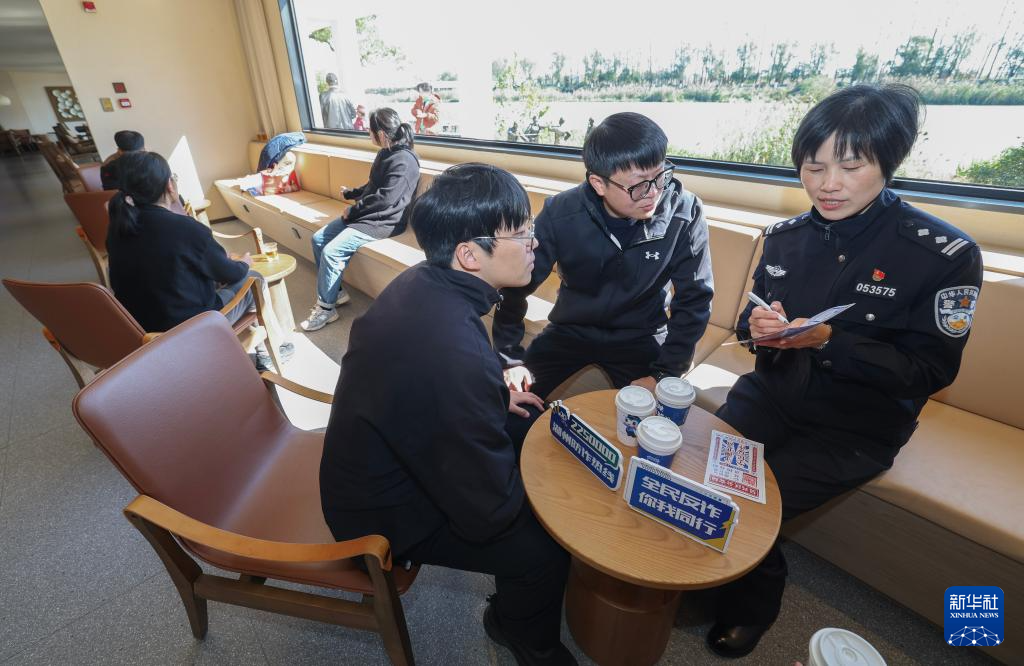 11月19日,道场派出所民警在民宿里给外地游客宣传反诈知识。