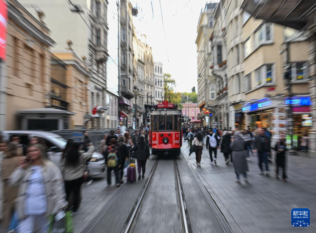 11月19日,铛铛车在土耳其伊斯坦布尔的独立大街上行驶。